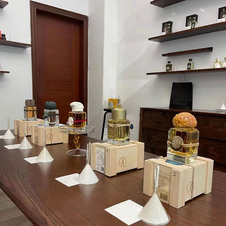 Explore our meticulously arranged shelves, adorned with bottles from prestigious niche perfume houses around the globe. From the classic elegance of renowned perfumers to the avant-garde creations of independent artisans, we offer an extensive range of fragrances to suit every discerning taste and style.
